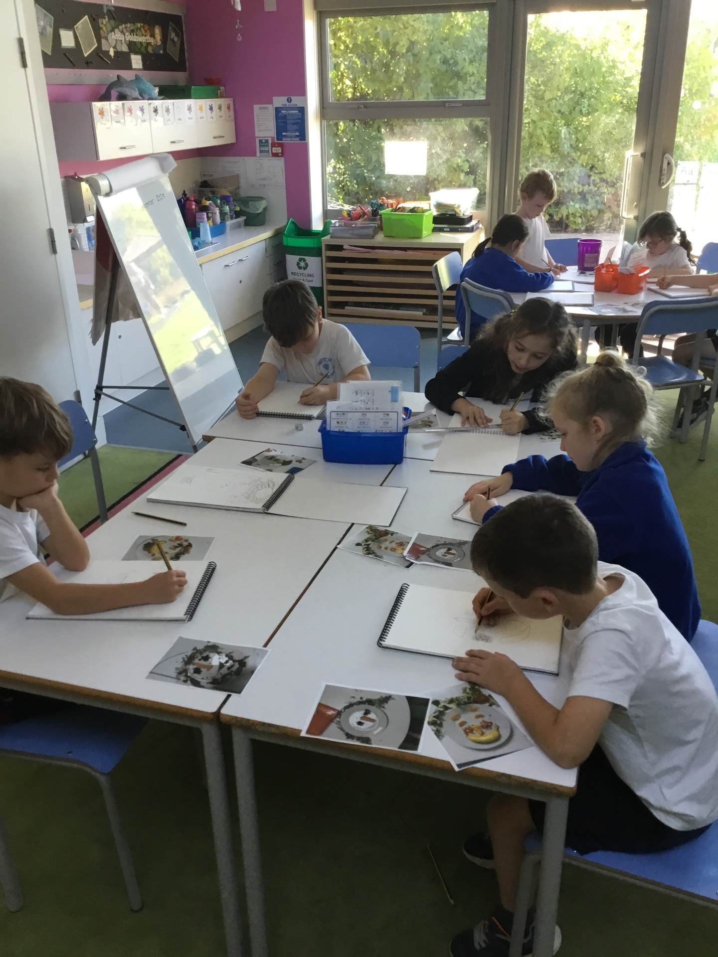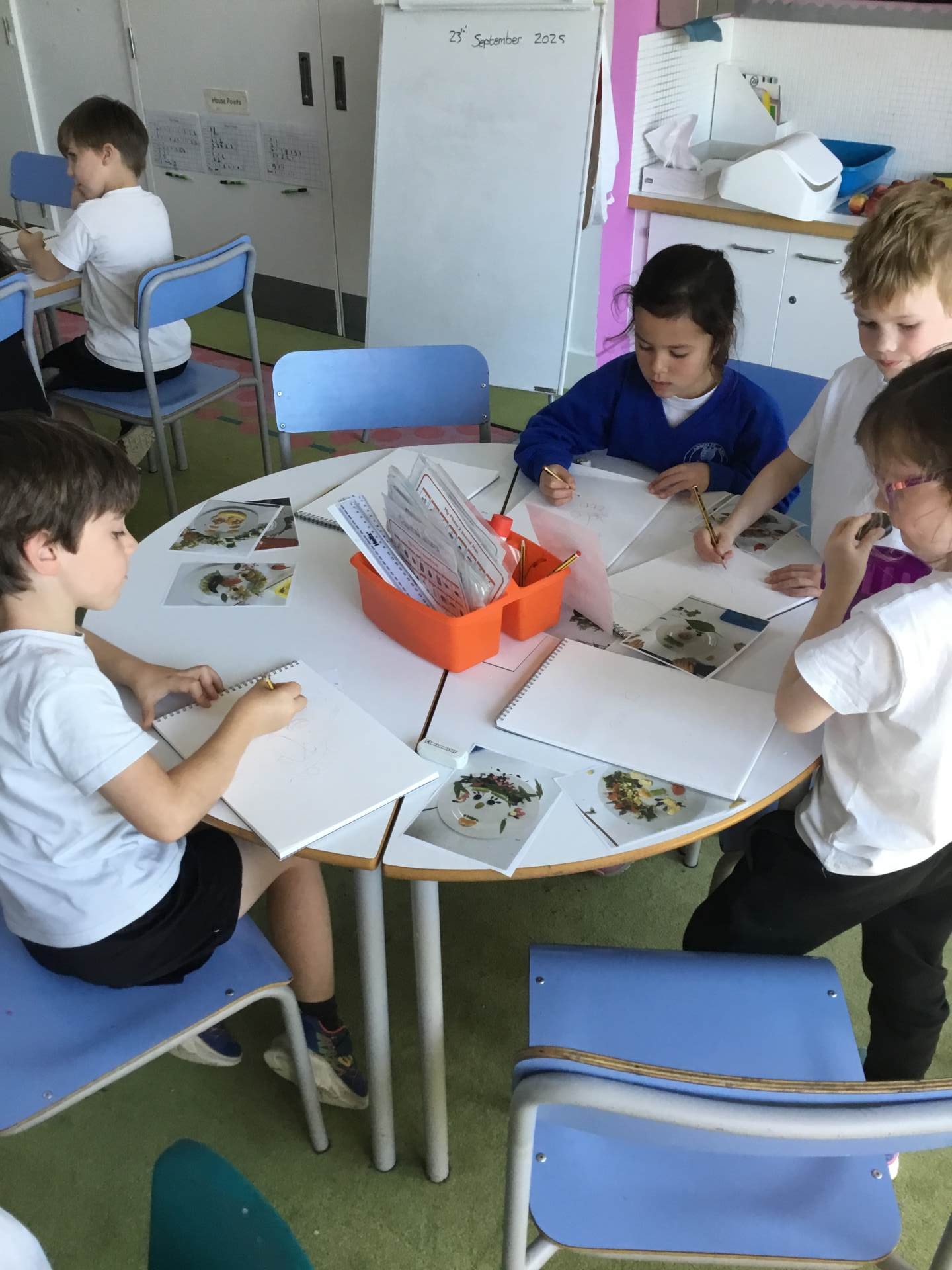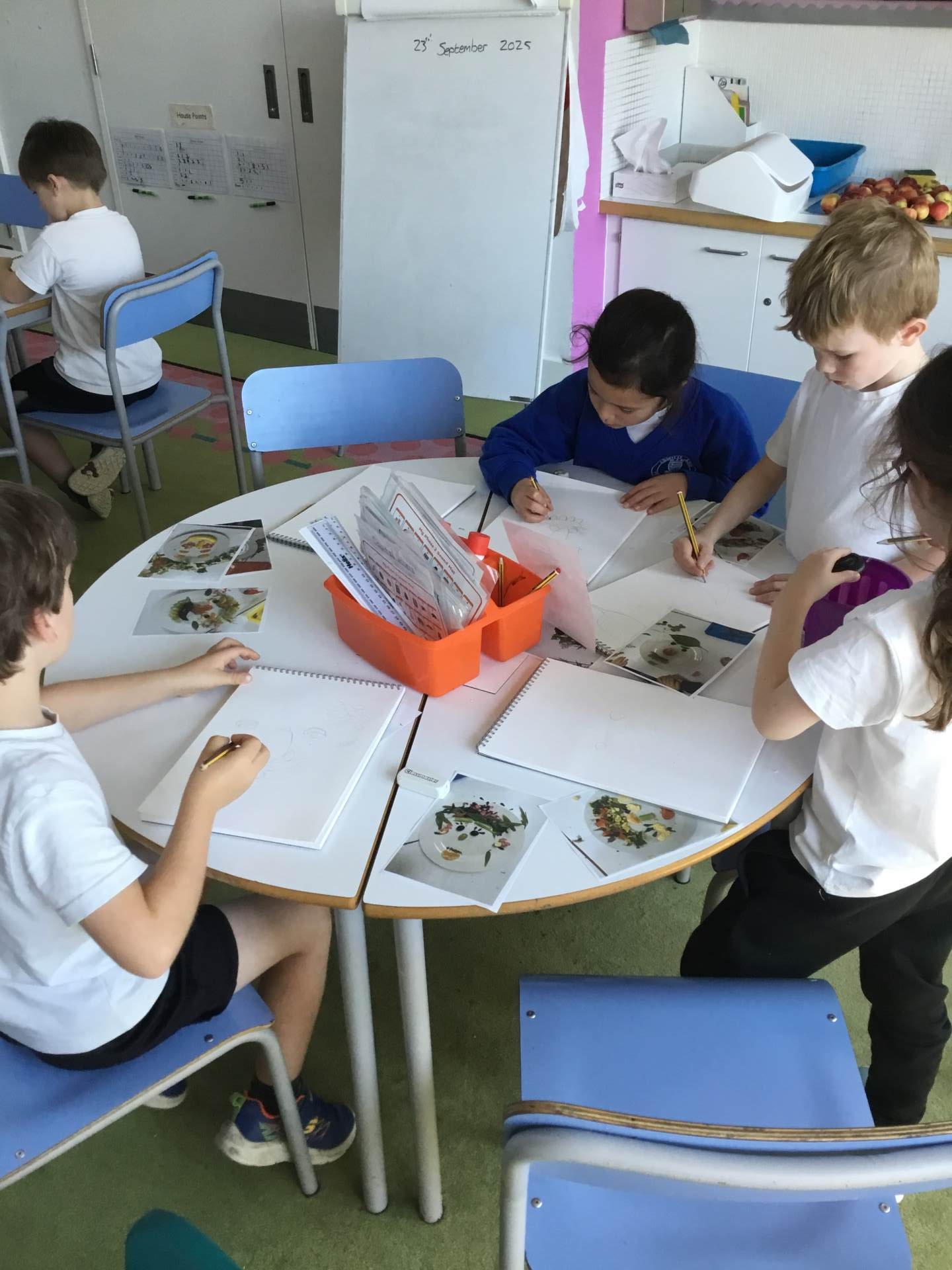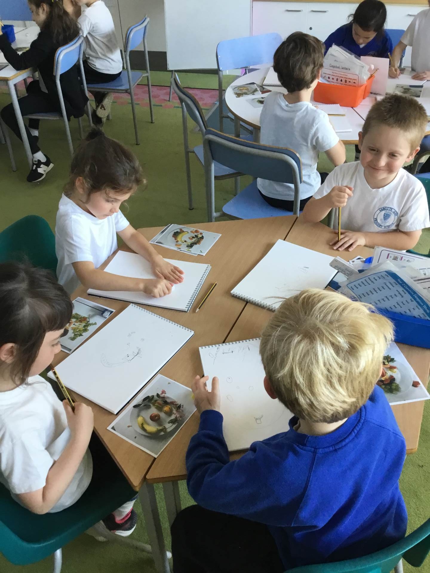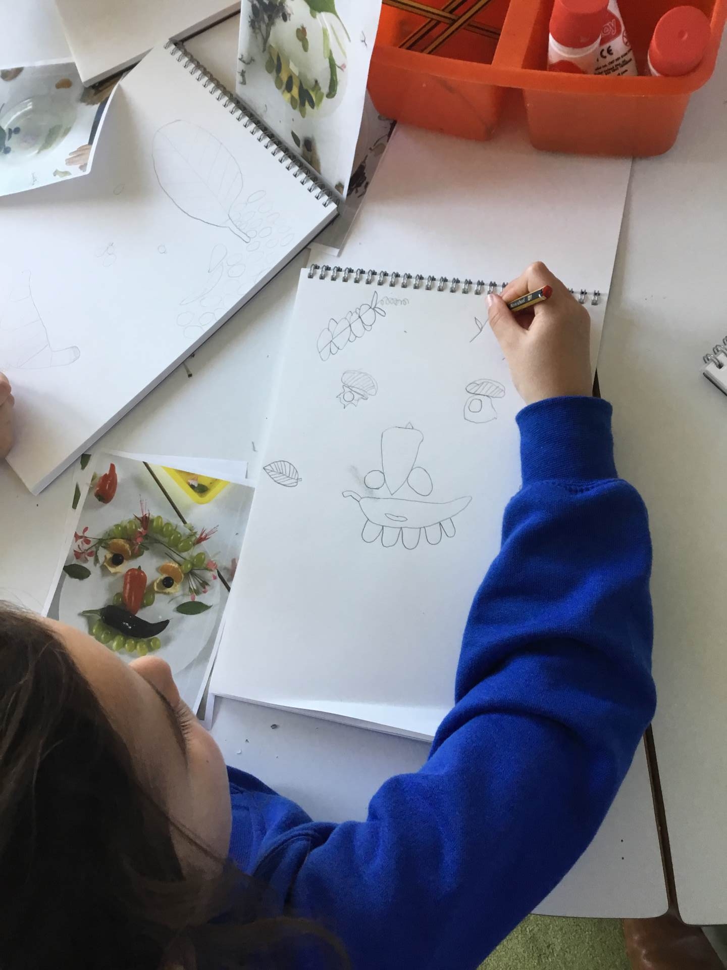 As artists, we created fruit art portraits inspired by the work of Giuseppe Arcimboldo. Initially, we created portraits using fruit, then sketched and painted them.