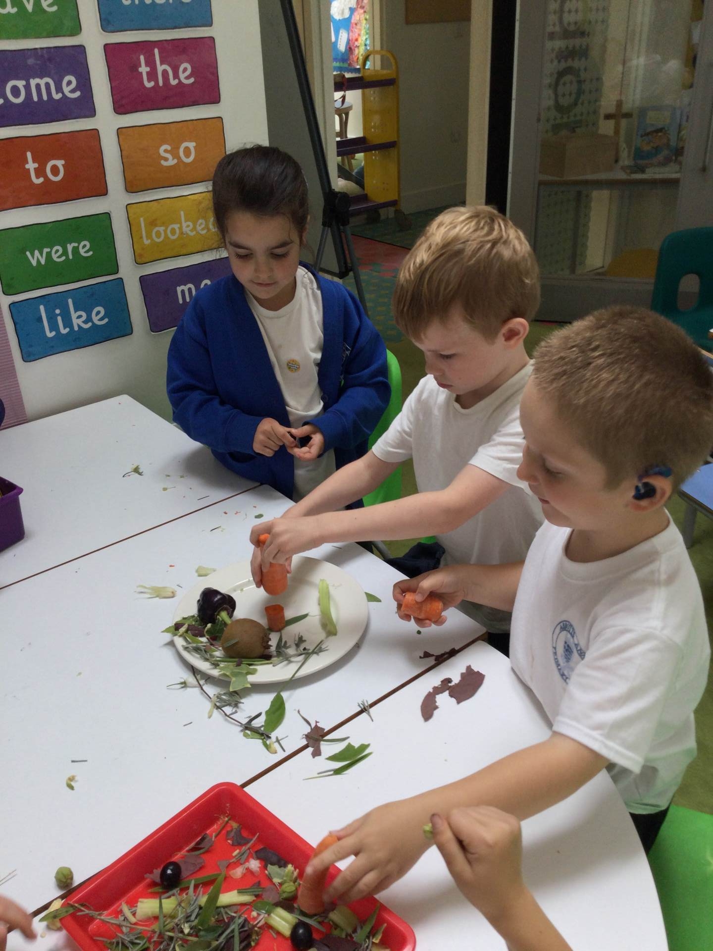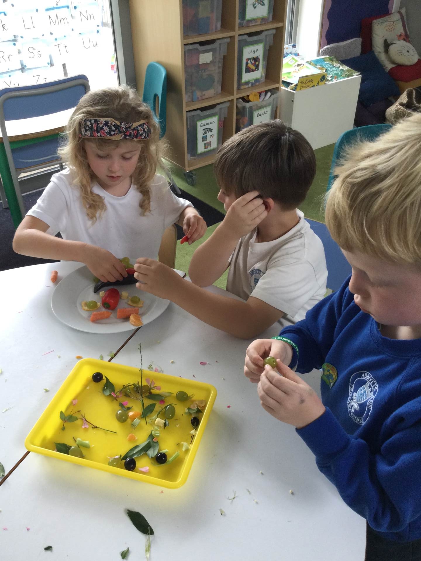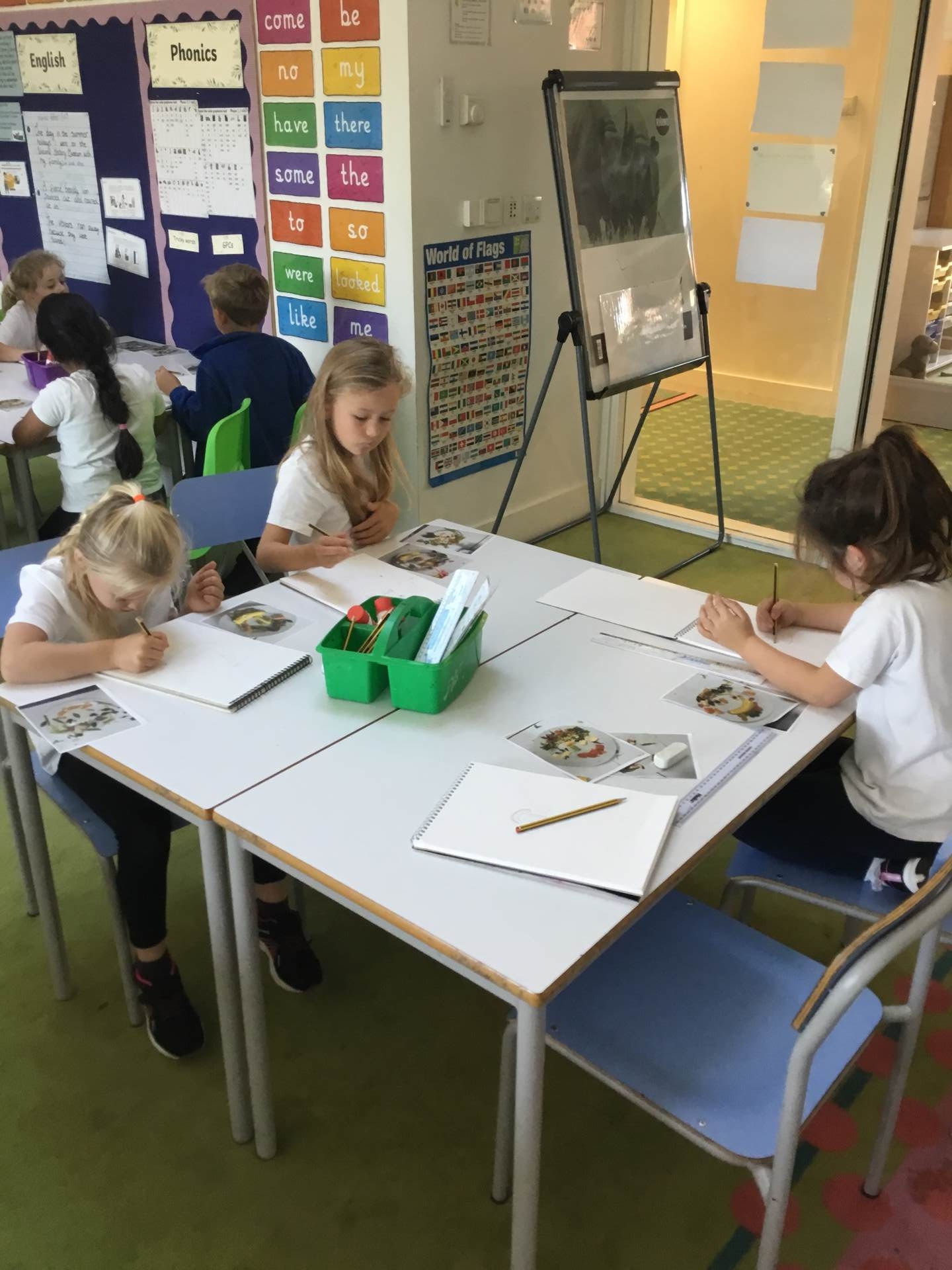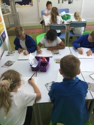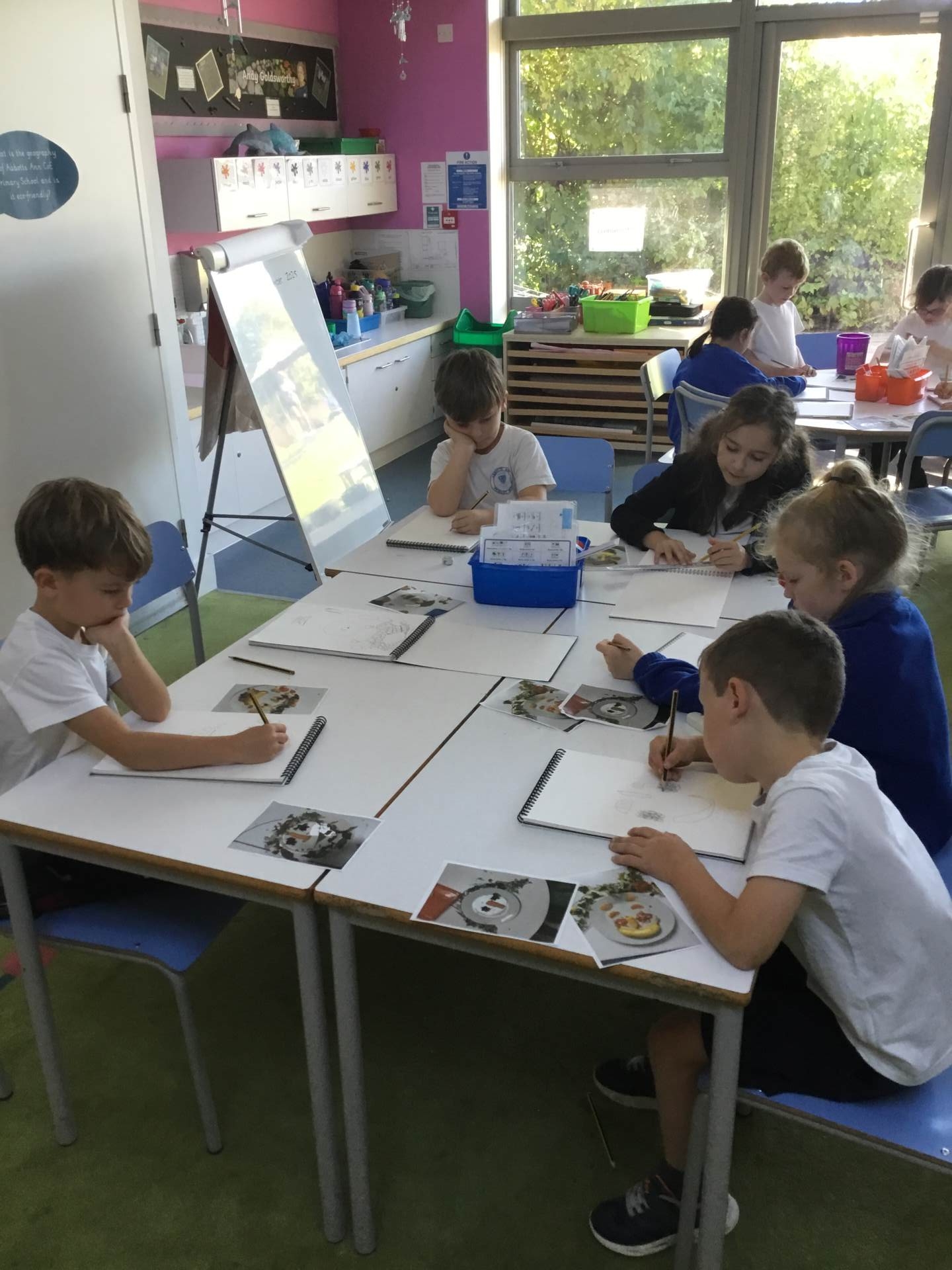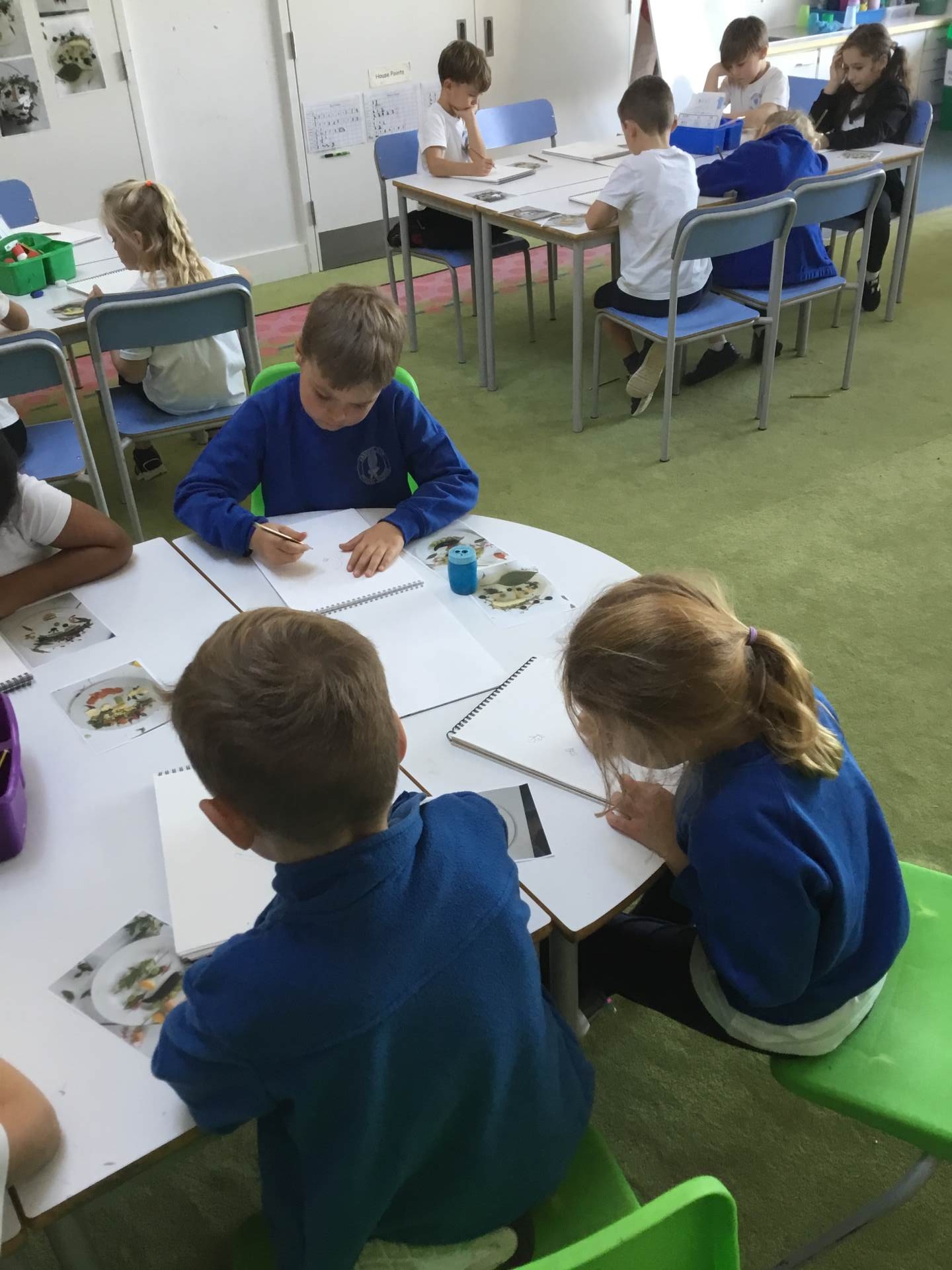 As artists, we created fruit art portraits inspired by the work of Giuseppe Arcimboldo. Initially, we created portraits using fruit, then sketched and painted them.